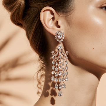 Turn heads with these elegant chandelier-style long danglers, featuring pear-shaped lab-grown diamonds that cascade gracefully—perfect for adding timeless glamour to both grand events and intimate evenings.