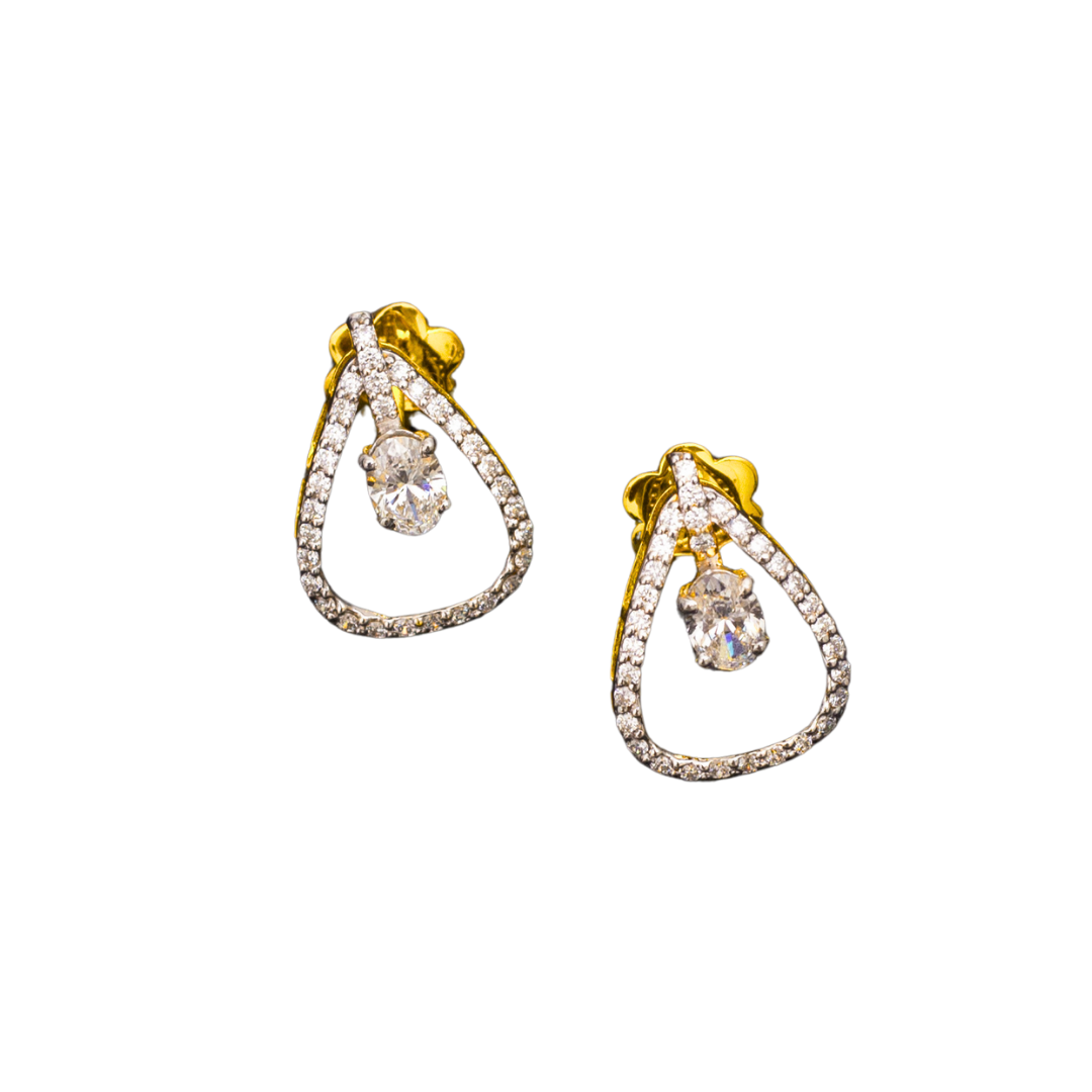 Elegant pear-shaped diamonds rest gracefully within a sparkling teardrop frame. Designed in hallmarked gold, these...