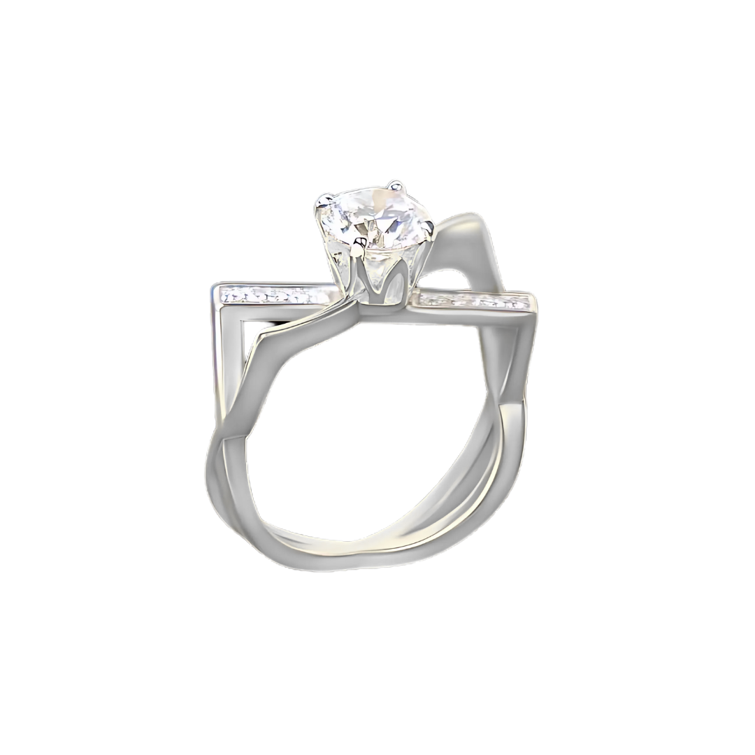 A true statement of contemporary elegance, this designer ring features a brilliant solitaire diamond gracefully set atop an artistic gold band with geometric curves and pavé detailing. Modern, bold, and timeless—it’s crafted for those who love to stand out with sophistication.